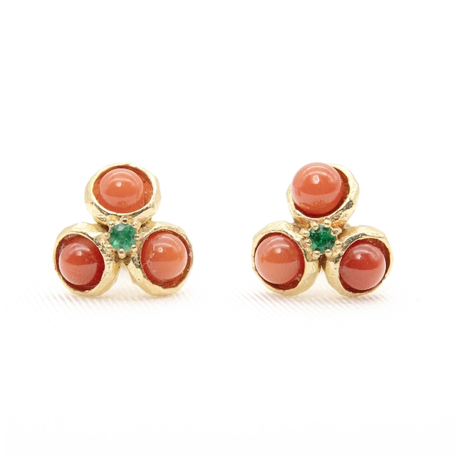 赤珊瑚とエメラルドを使用したスタッドピアス