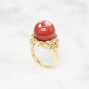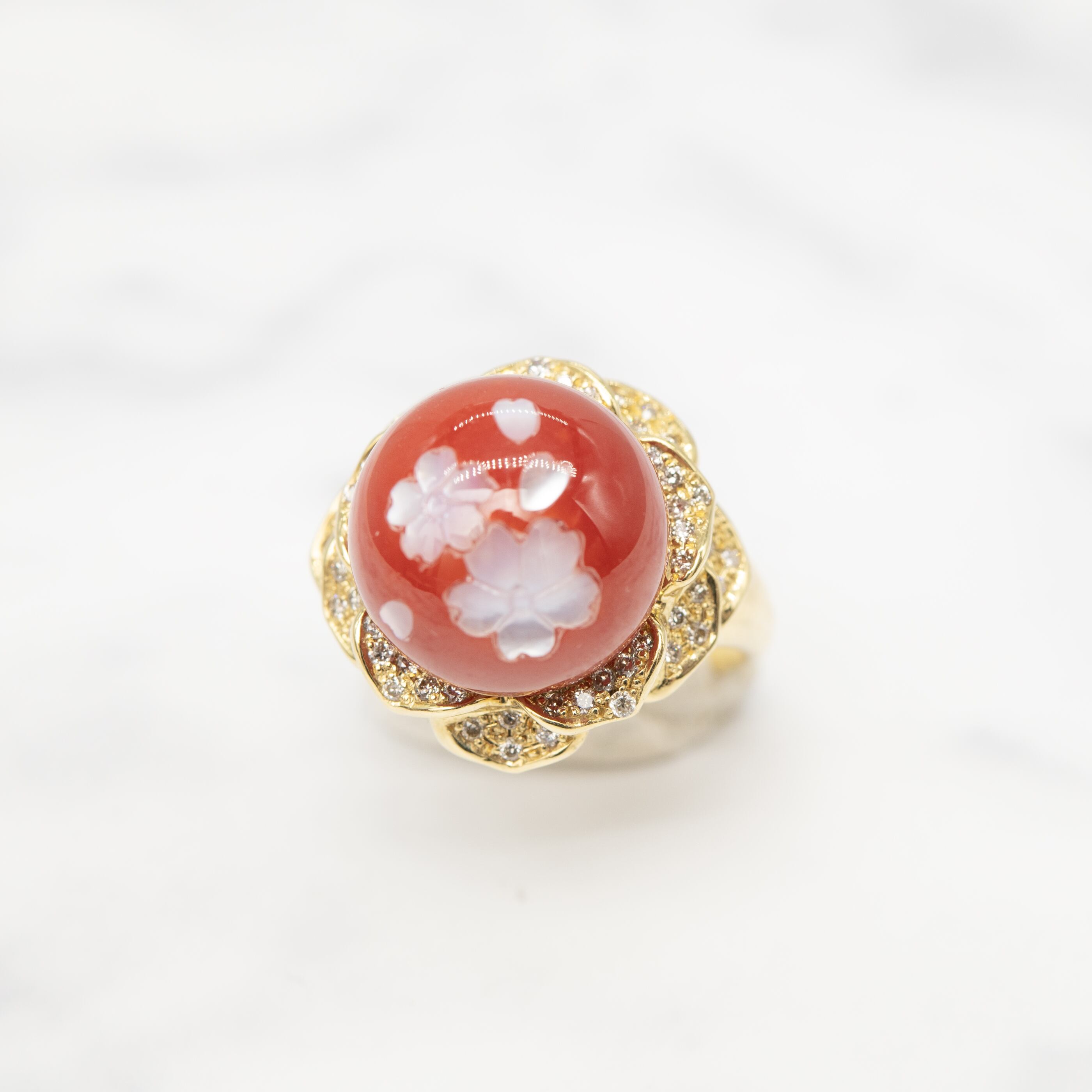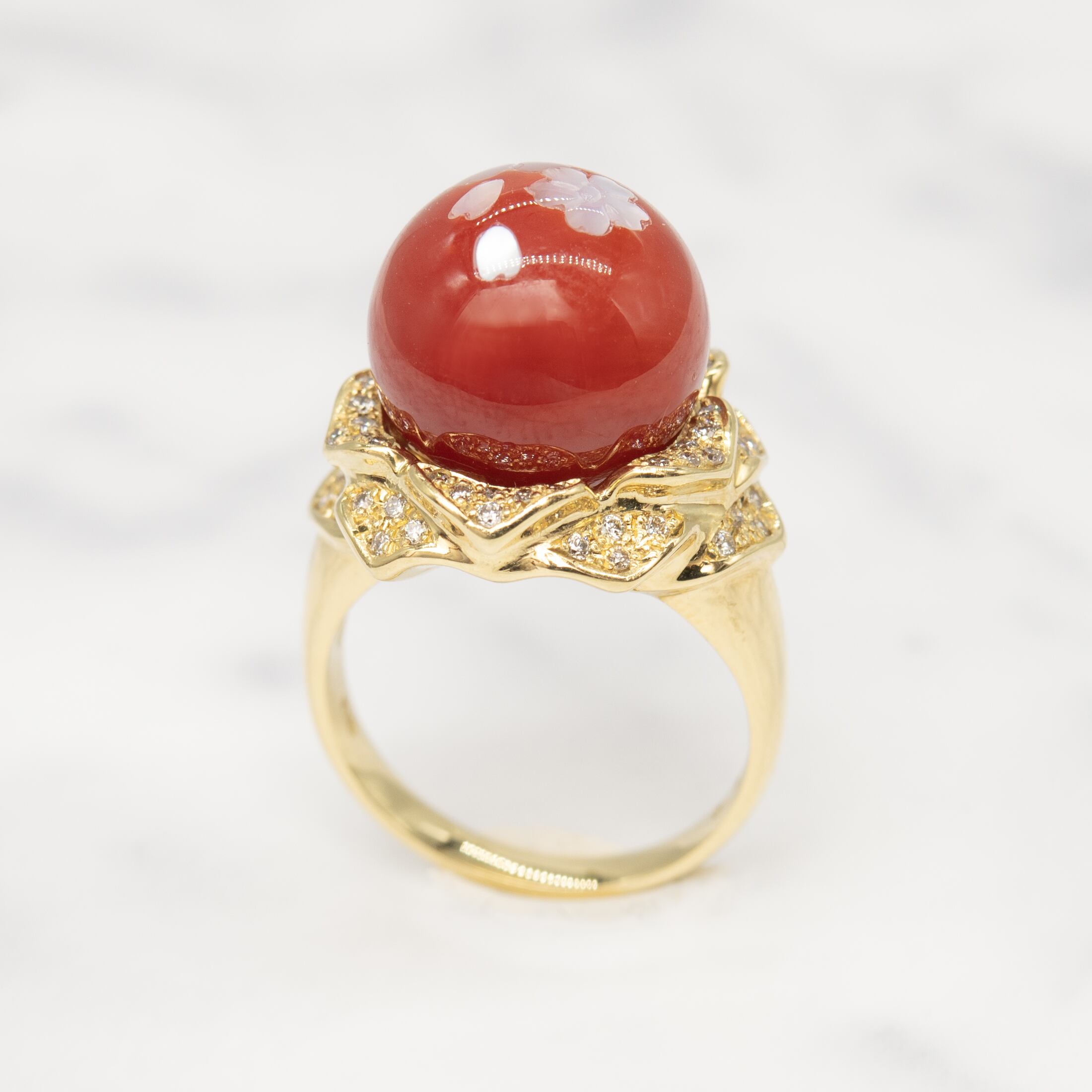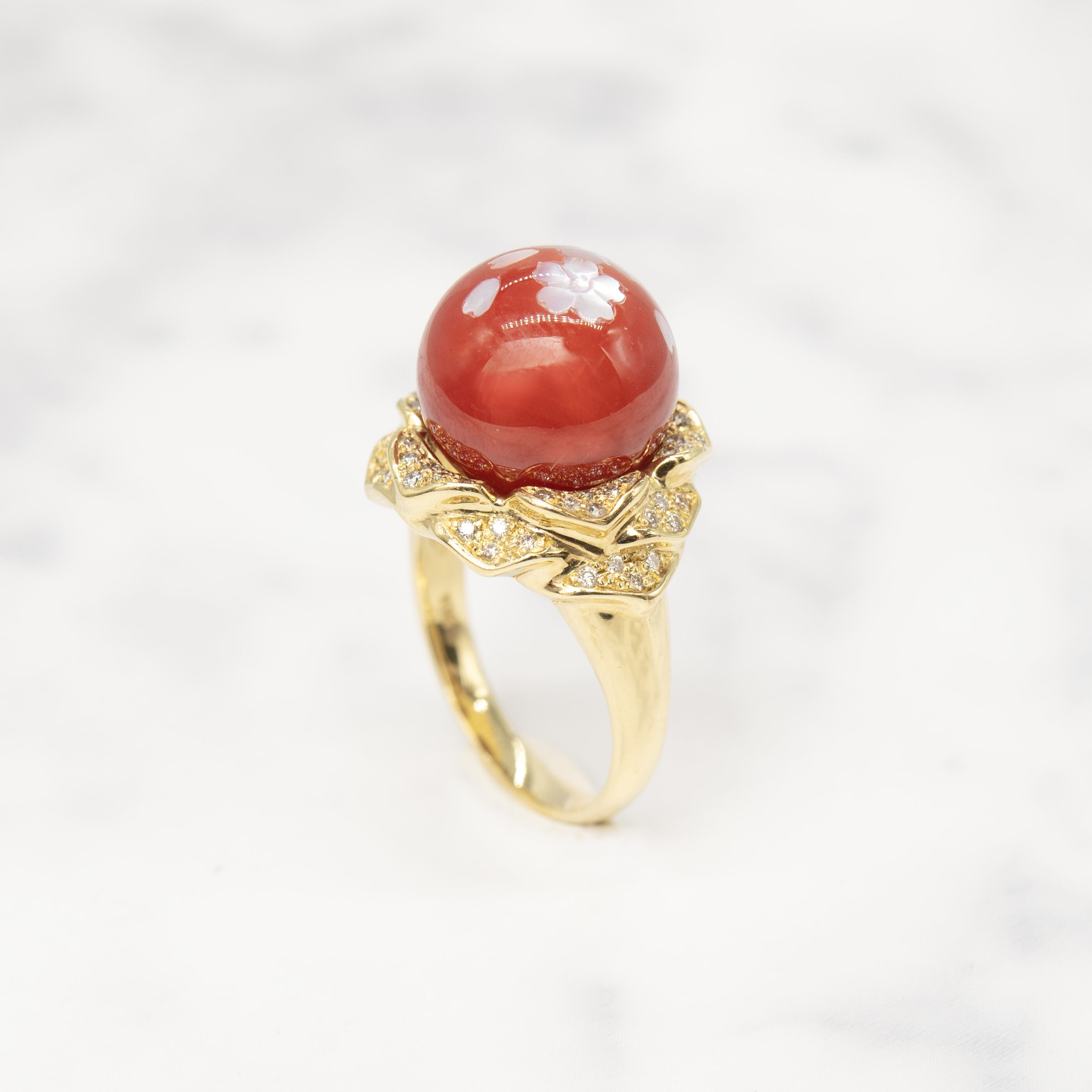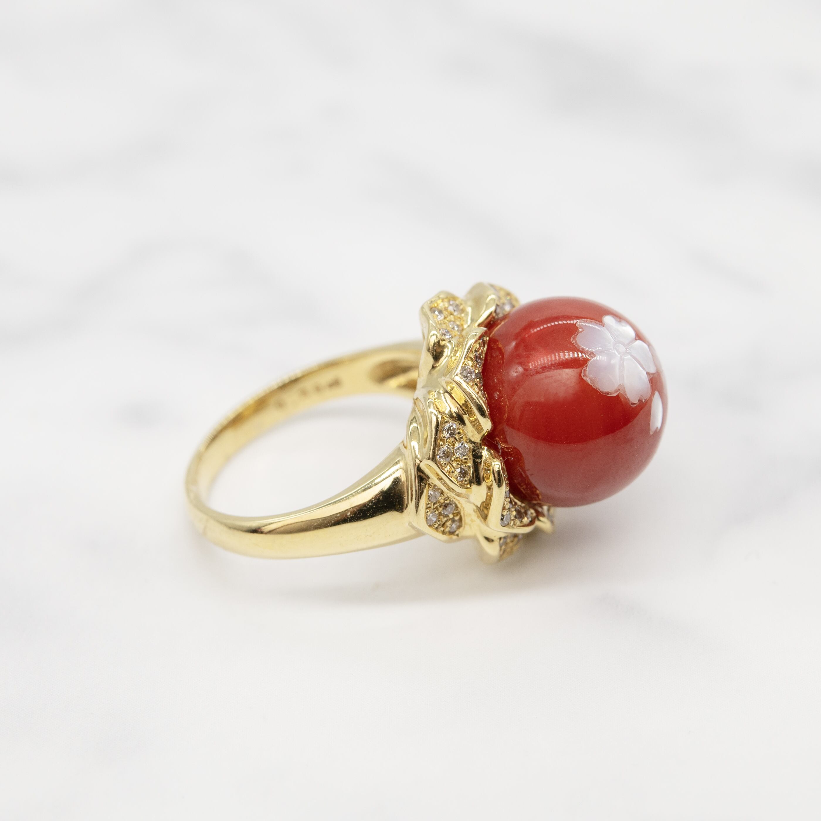 日本産赤花珊瑚(13mm)0.8ctダイヤモンド付きK18リング