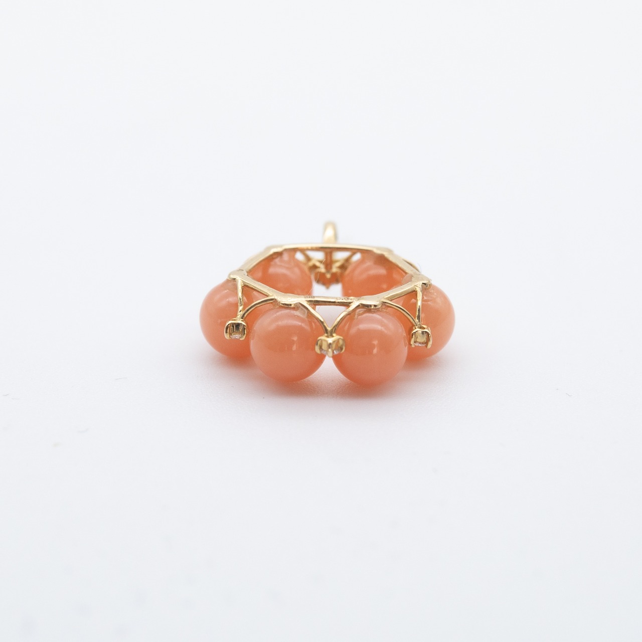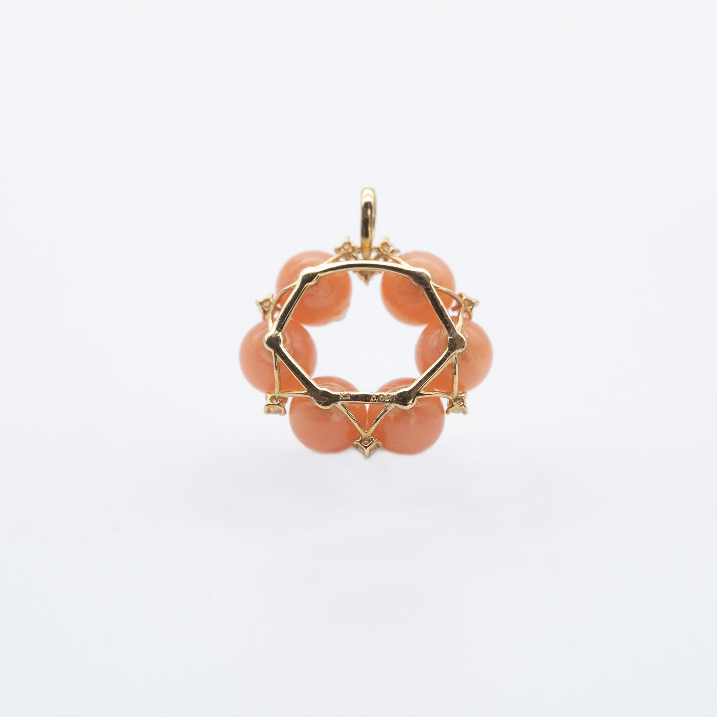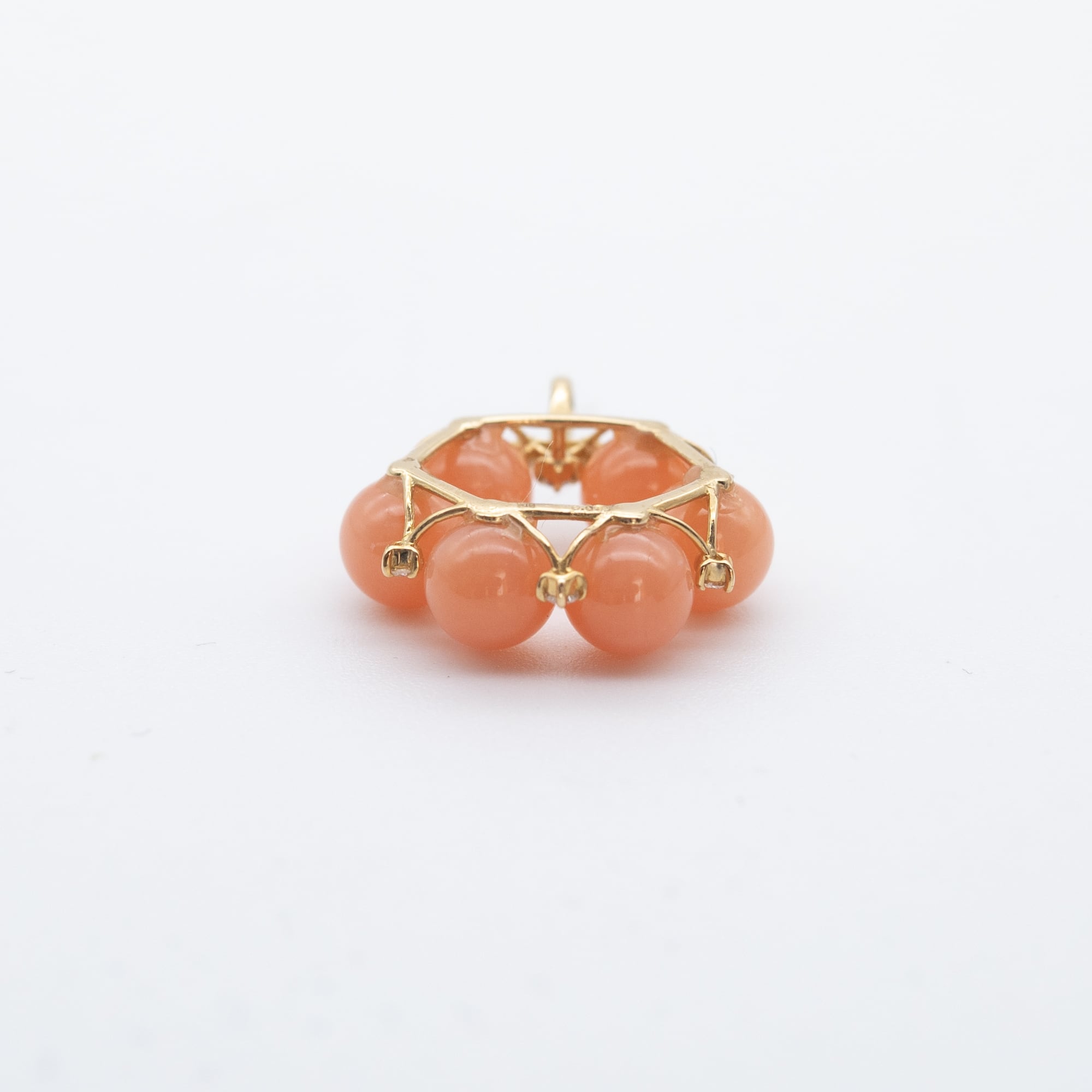 ピンク珊瑚ペンダント (K18金具・d0.08ctダイヤ付き)