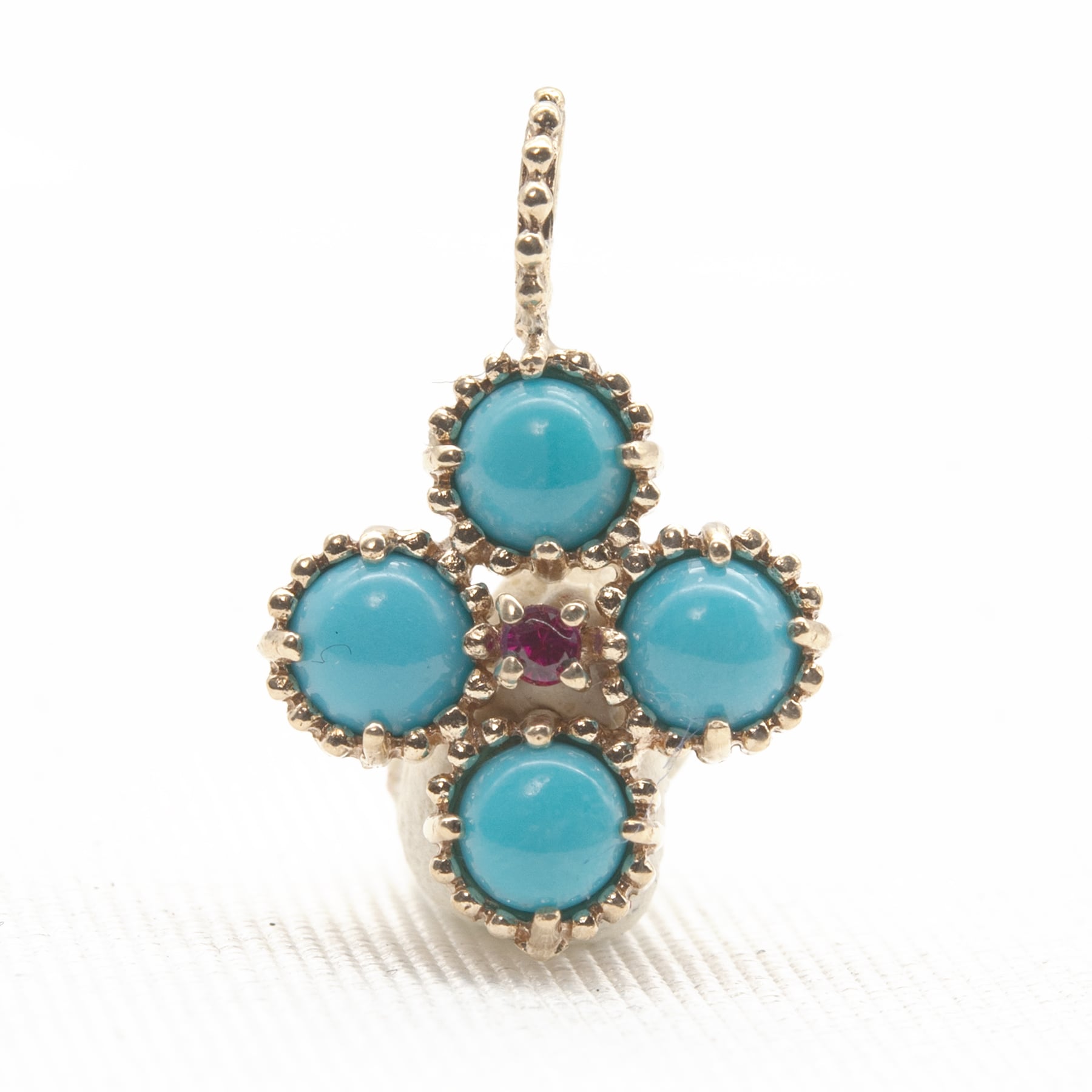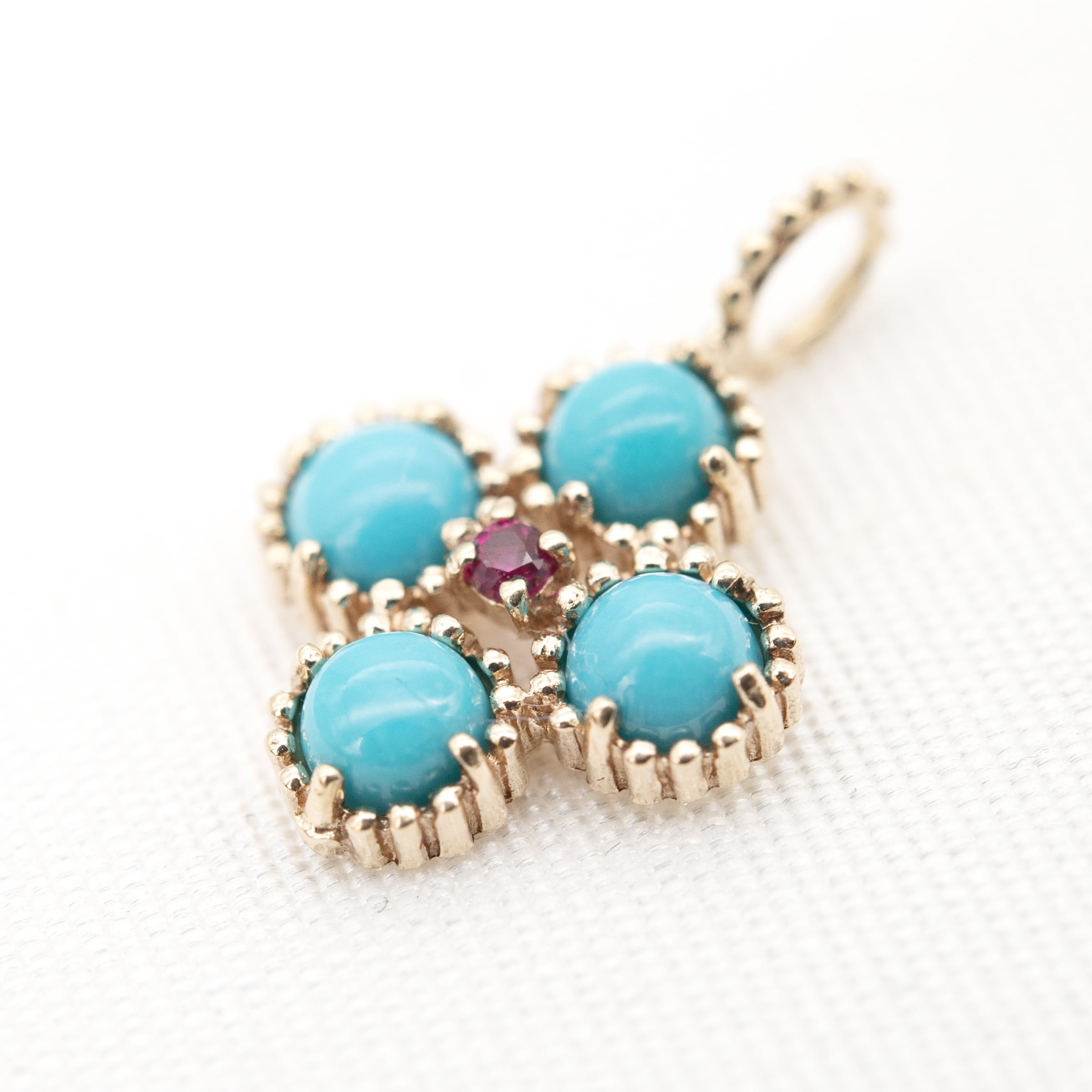 カボションカットしたターコイズとルビーを使用したK0YGペンダントトップです。