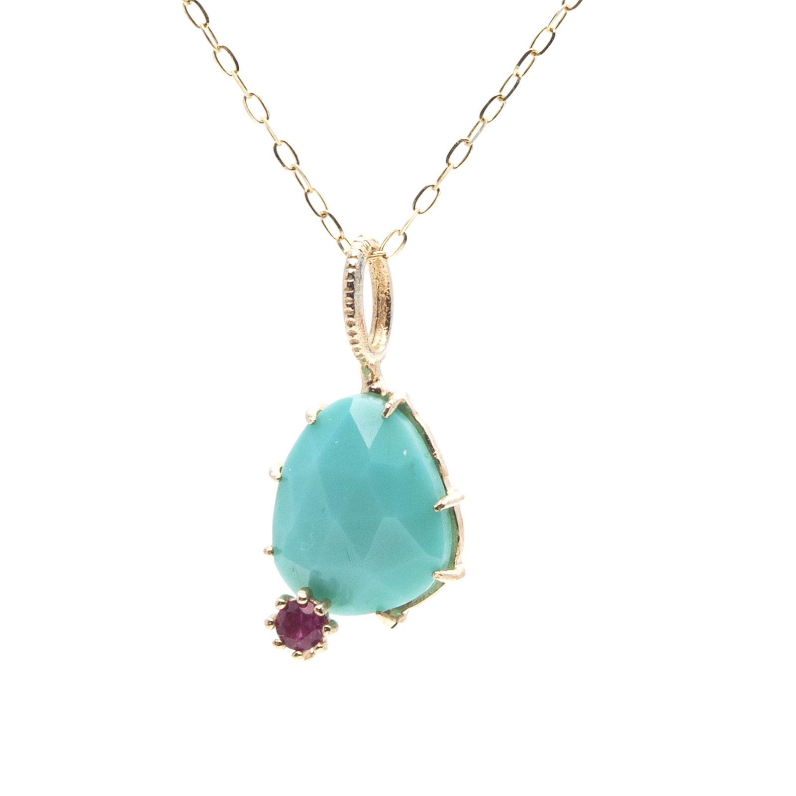 ターコイズとルビーを使用したK0YGペンダントトップです。