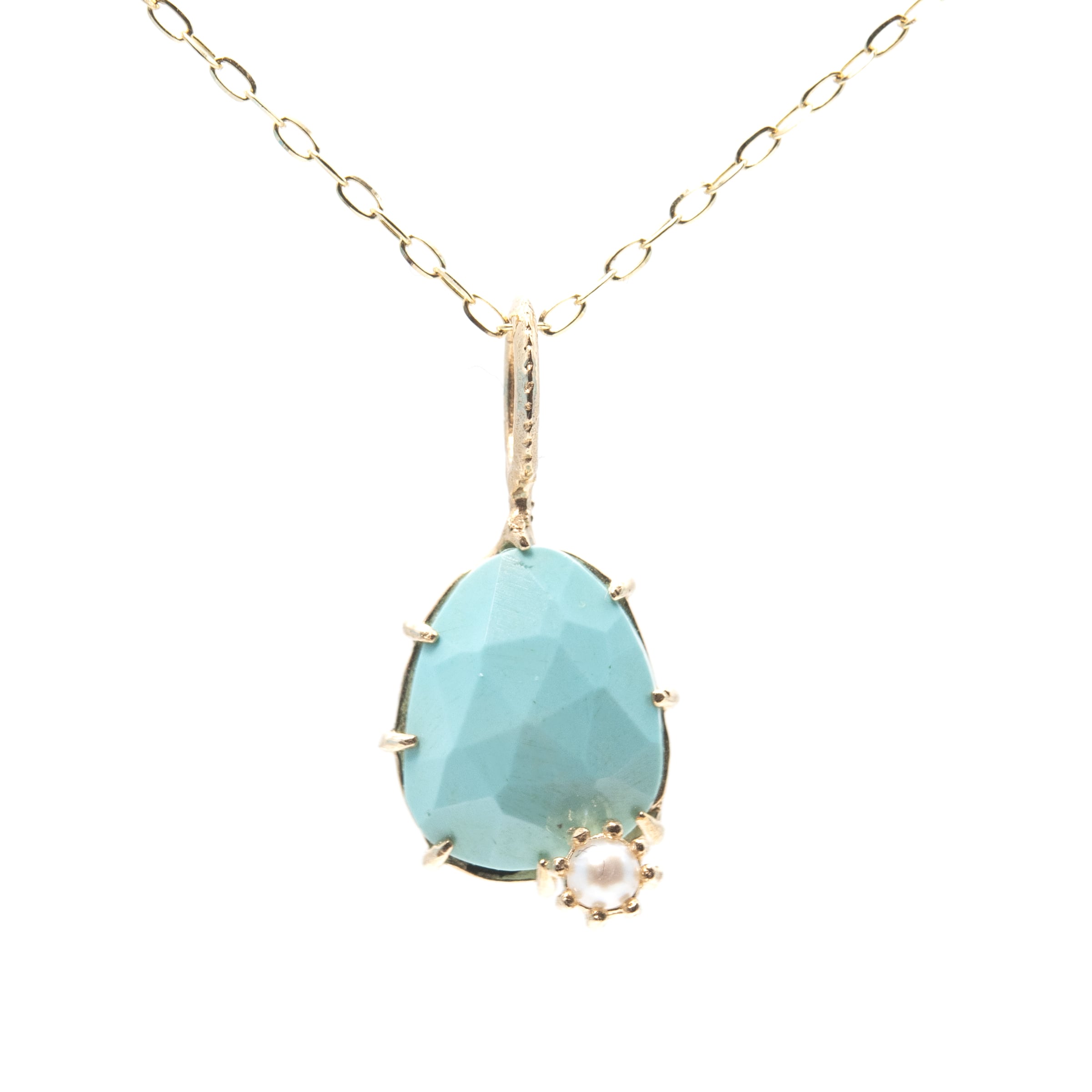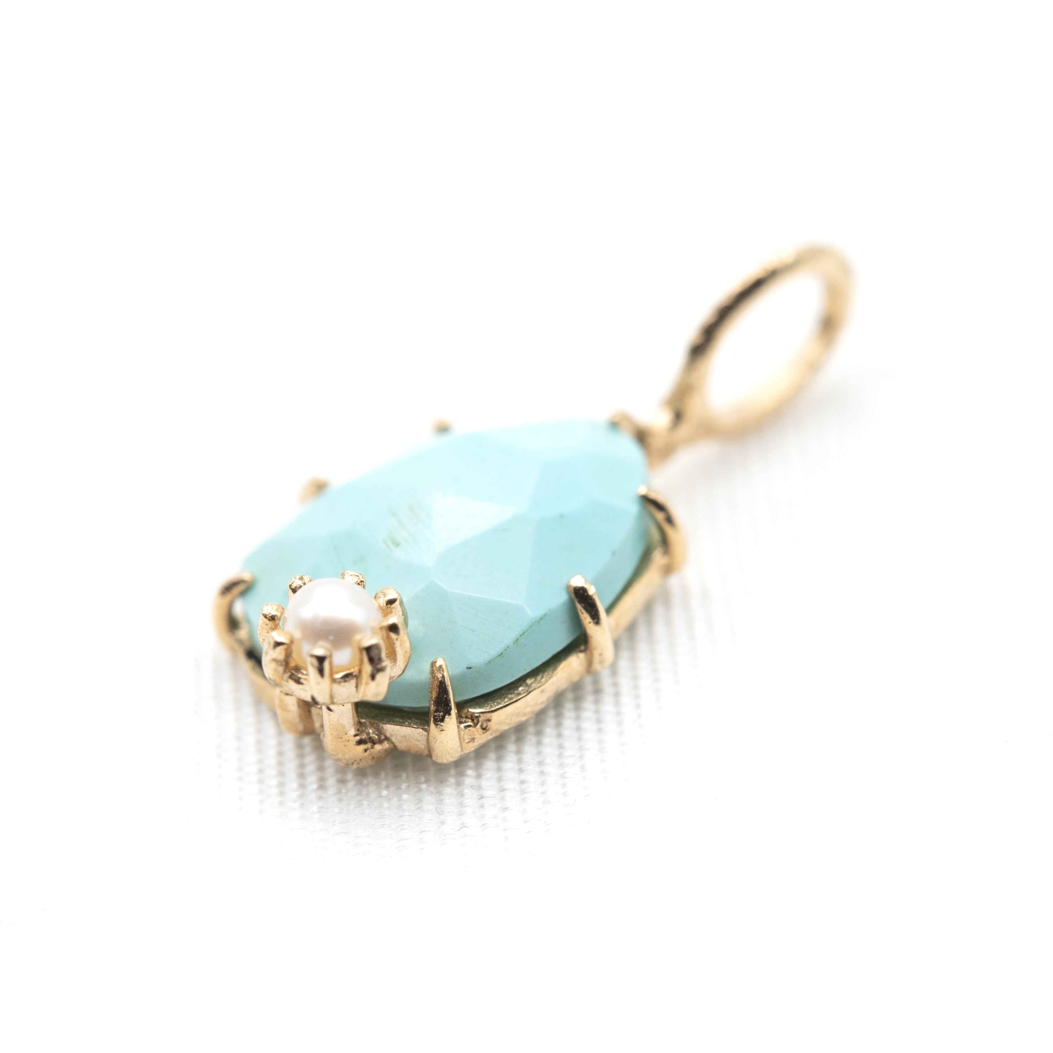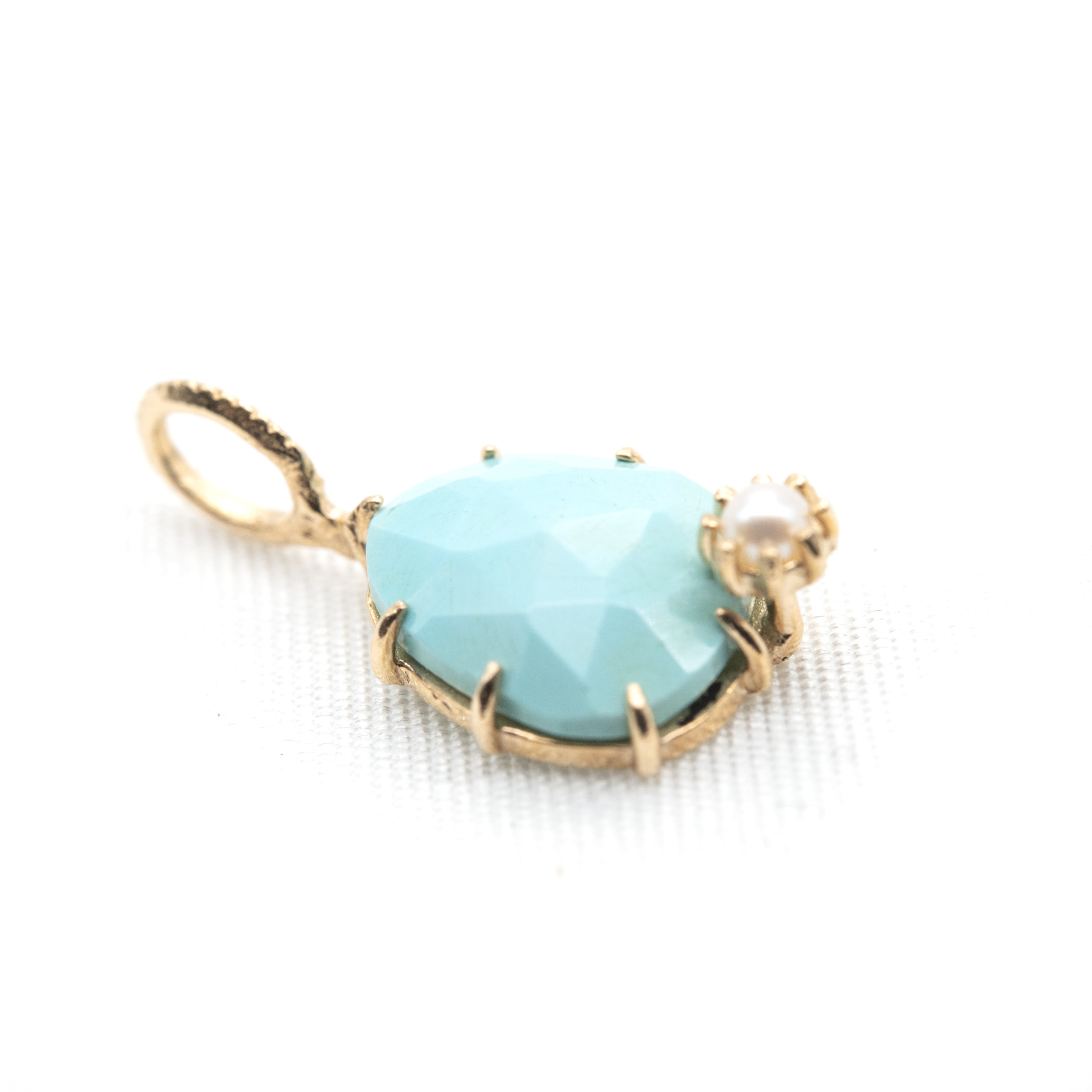 ターコイズと淡水パールを使用したK0YGペンダントトップです。