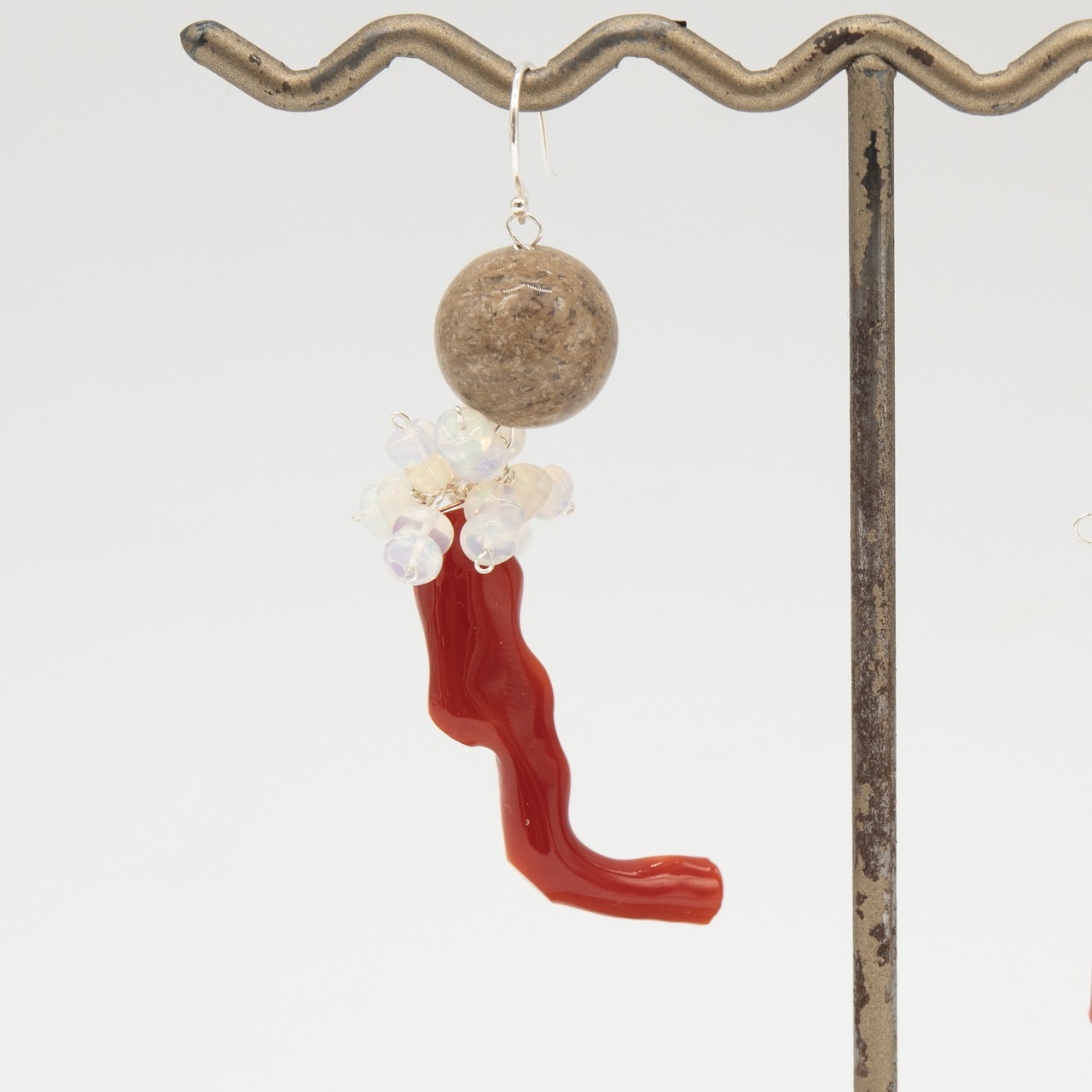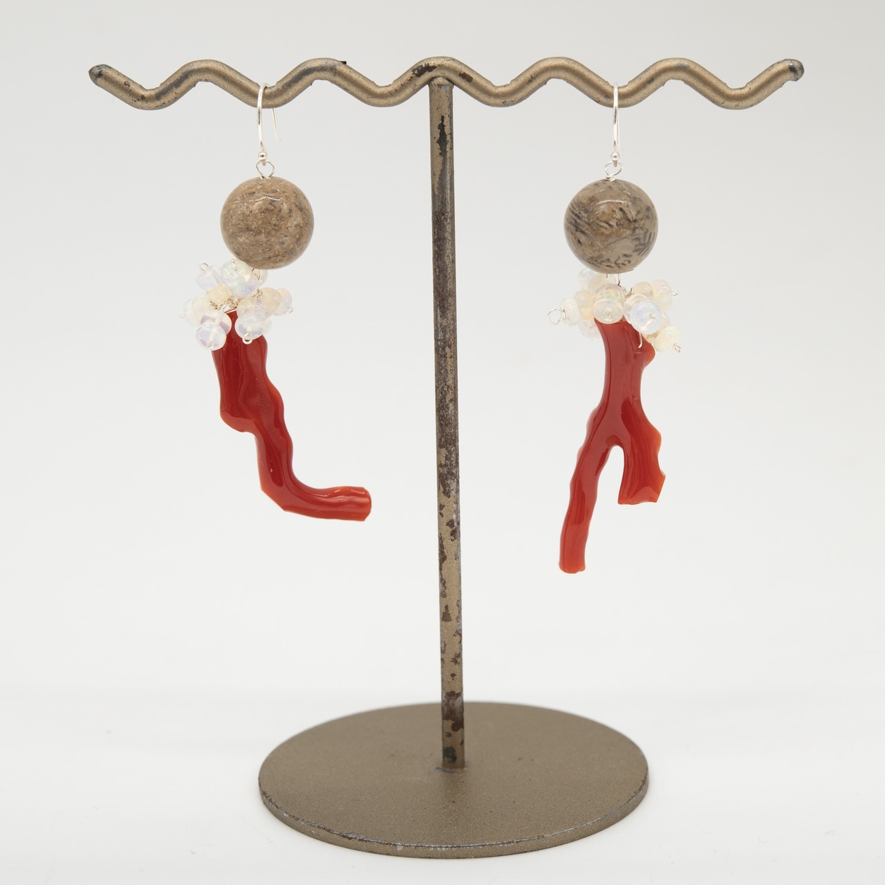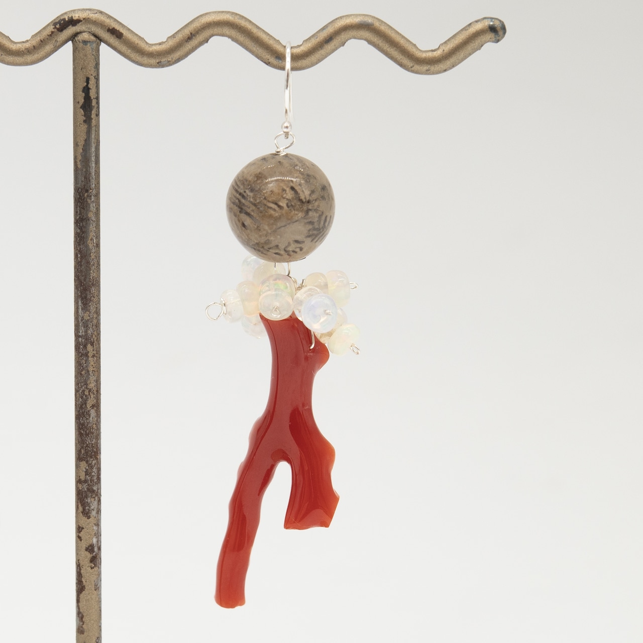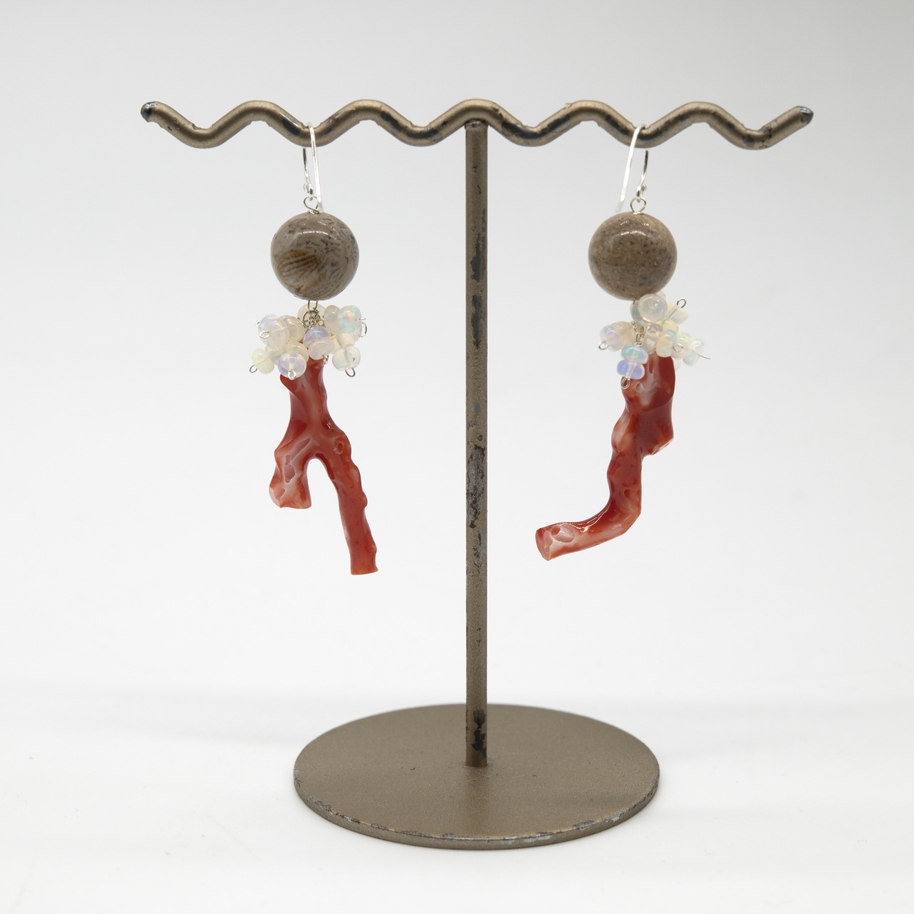「赤枝珊瑚・フォシルコーラル・オパール」+Silber925デザインピアス